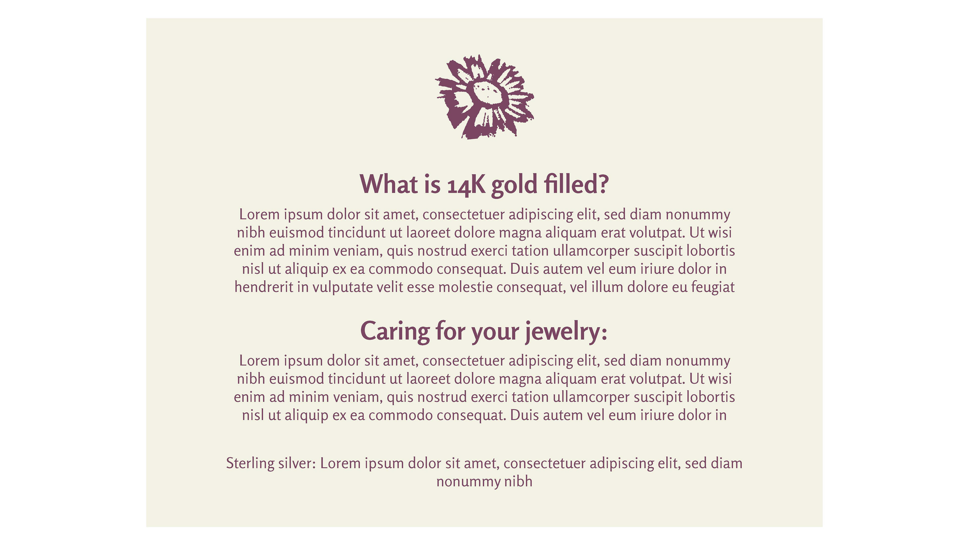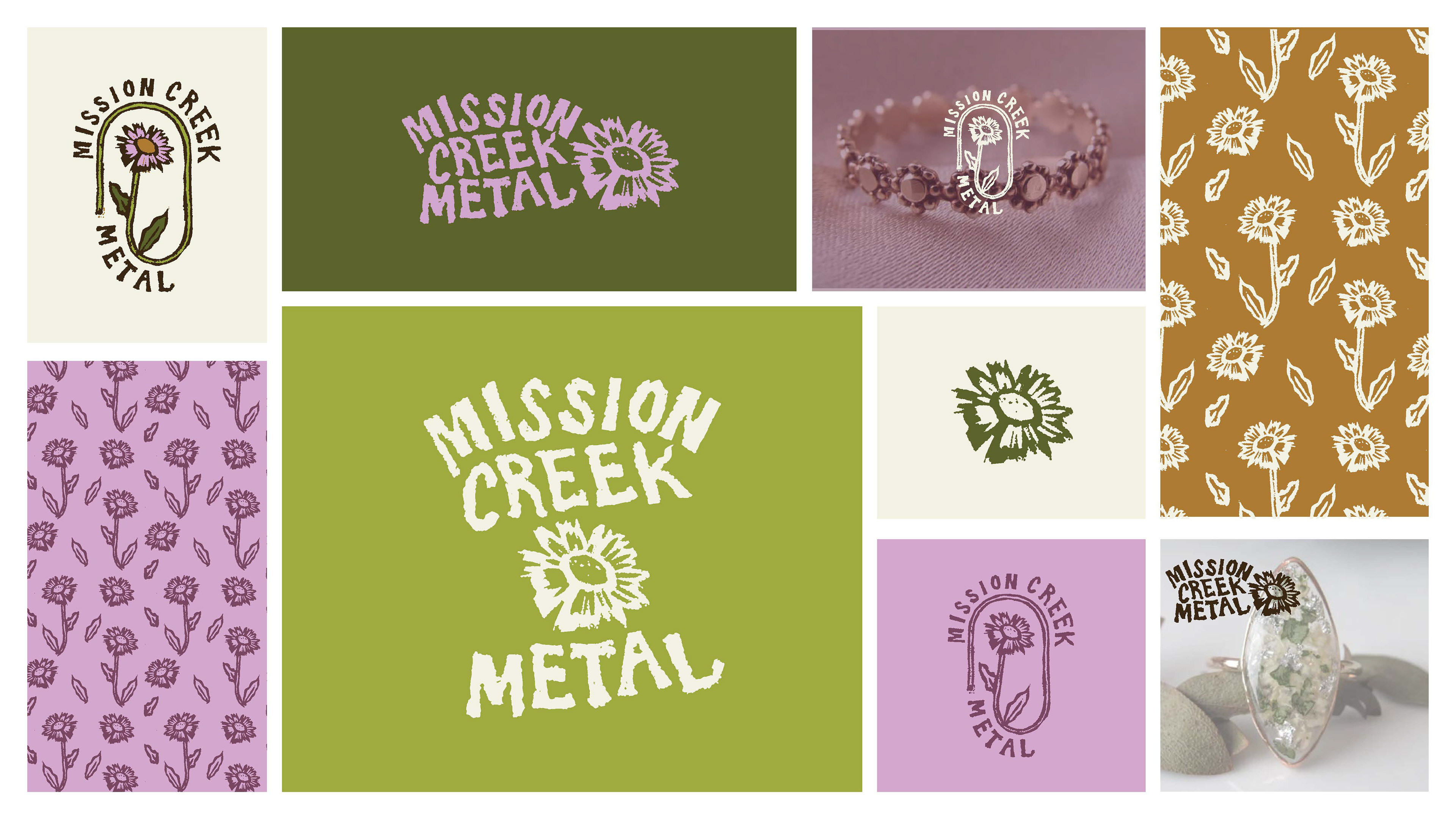 Using the jewelry products and state wildflowers as inspiration, I made a logo and visual identity that reflected the company's handmade values.